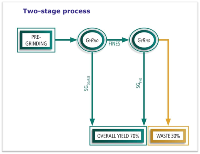 Figure 4: Schematic depicting milling and spheroidisation of products – SG18 & SG10. The “Fines” stream is a super fine, micronized carbon product with application in a wide range of metallurgical industry uses.
