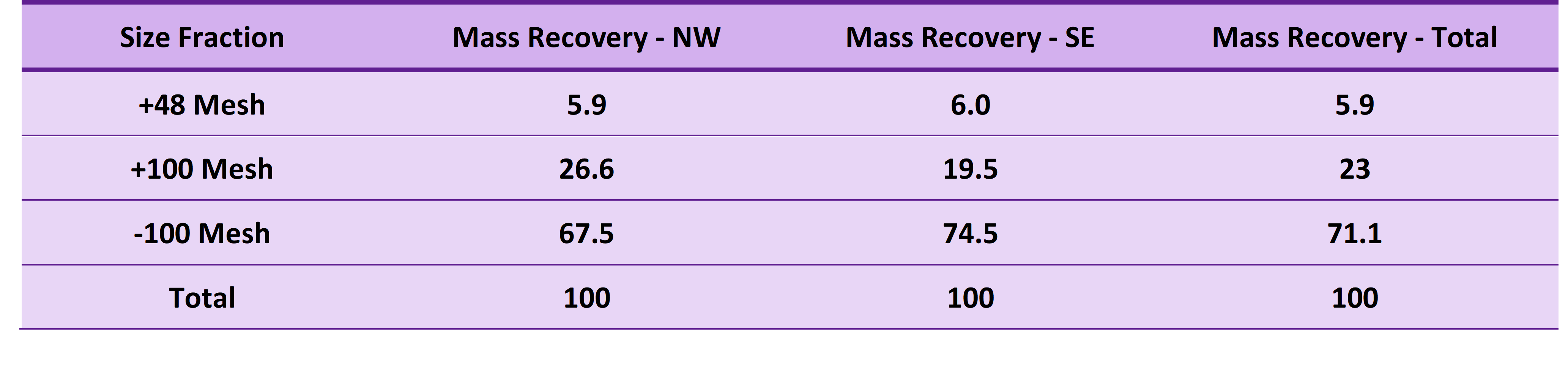 Table 2: Mass Recovery by size distribution for samples from Northwest and Southeast resource zones (original)